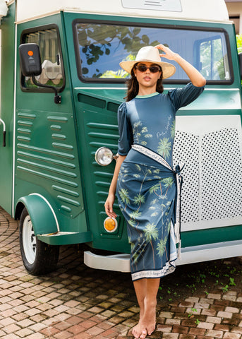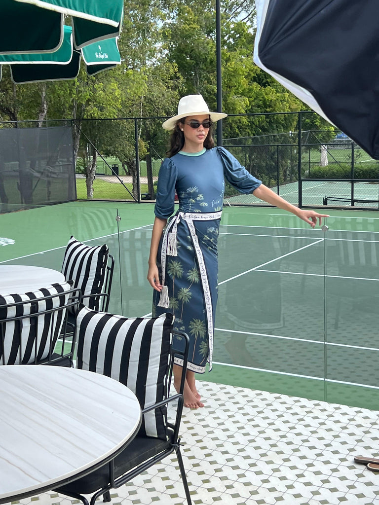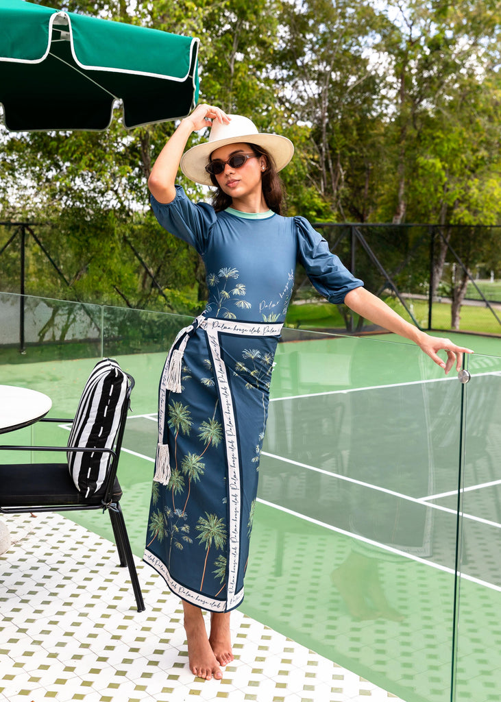 The Palma house Club bathing suit set is the ultimate combination of style and practicality. Features a flattering 3/4 sleeve design that provides ample coverage while maintaining a sleek silhouette a built-in top, and bra cups for extra support, ensuring both comfort and elegance. Crafted from high-performance, waterproof materials, this ensemble is perfect for both beachside lounging and aquatic adventures. Paired with a mid-length pareo (sarong) made from swim-proof material, you can choose to tie it at the side or wear it as a skirt with invisible buttons, with beautiful Macrame tassels to elevate the look. The pareo is quick-drying and non-see-through, making it a perfect match for the bathing suit.